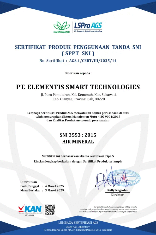 Our products are backed by multiple certifications, ensuring they meet the strictest standards for safety, quality, and compliance. From national quality standards to microbiological safety, every aspect of our water is rigorously tested and certified.